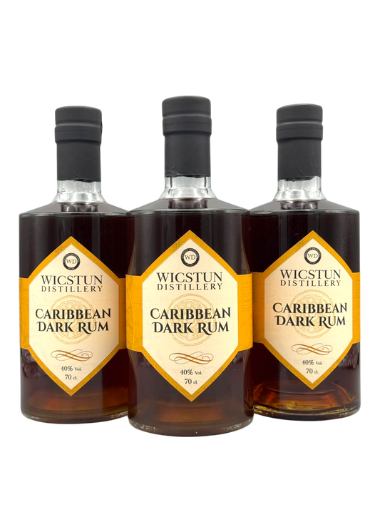 Introducing Wicstun Distillery's Caribbean Dark Rum, a rich and flavourful spirit that will transport your taste buds to the sunny shores of the Caribbean. This premium dark rum is made using specially selected Caribbean White rum, which has been expertly infused with a carefully chosen selection of flavours to create a truly unforgettable taste.